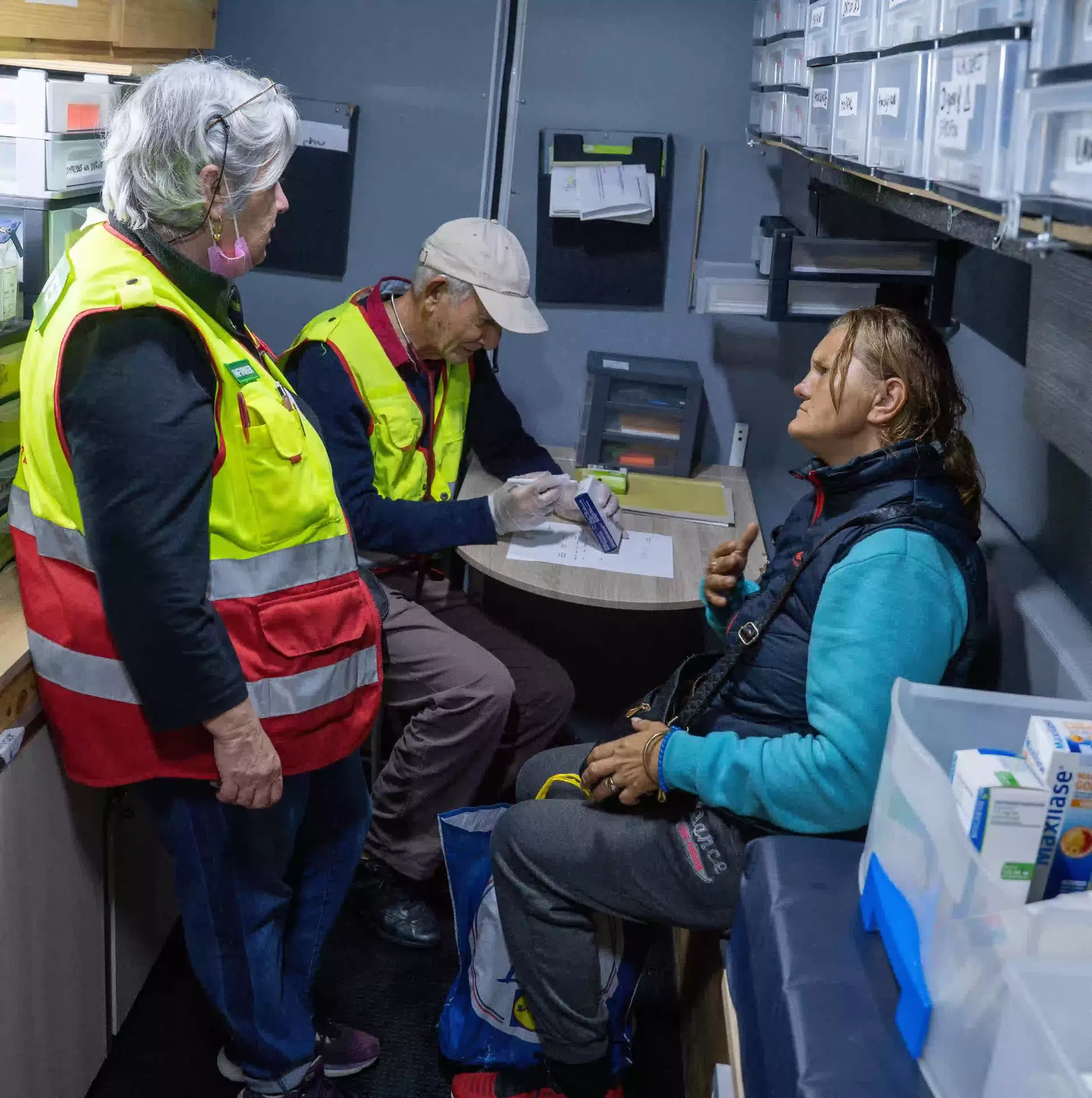 Dans les centres, les personnes peuvent avoir un repas, prendre une douche, recevoir des soins infirmiers. Elles peuvent aussi être accompagnées dans leurs démarches administratives : papiers d’identité, droits, demandes dans un centre d’hébergement ou un logement social.